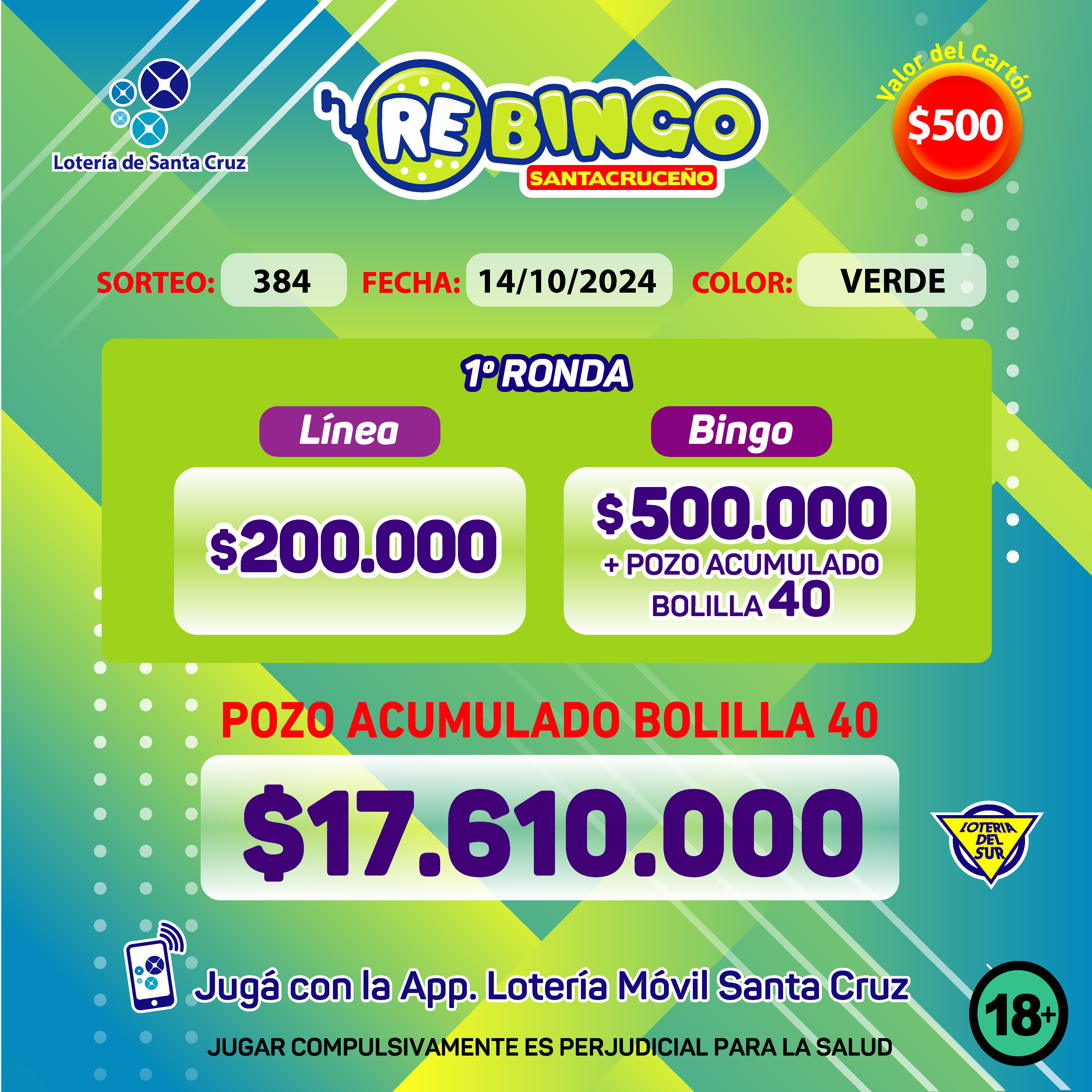 Sorteo Telebingo, Rebingo, Minibingo del 10/10/2024